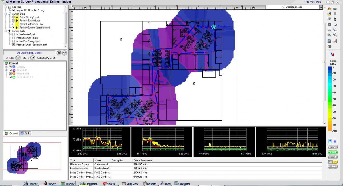 Wifi Survey Activos y pasivos con AirMagnet Survey. Medimos la cobertura y potencia de la señal de su wifi nueva o existente para asegurarnos que cumple con sus necesidades.
